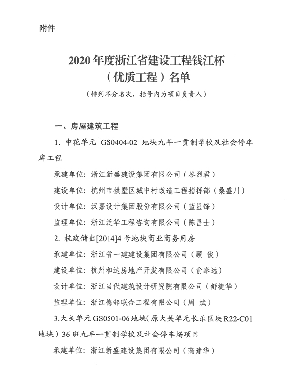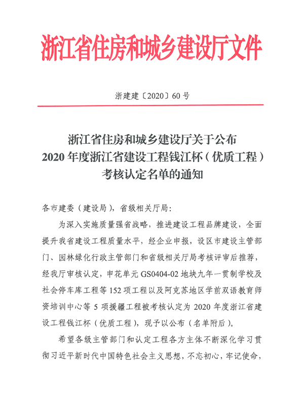 Assessment list of Qianjiang cup in 2020