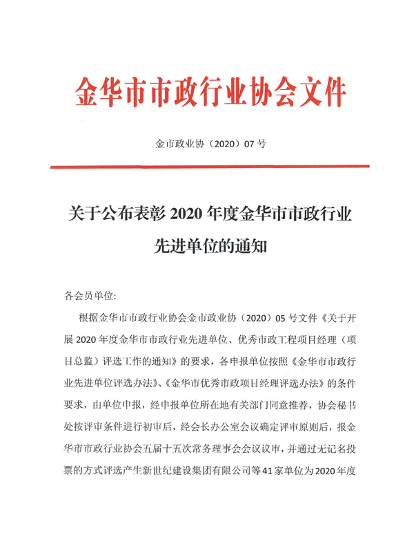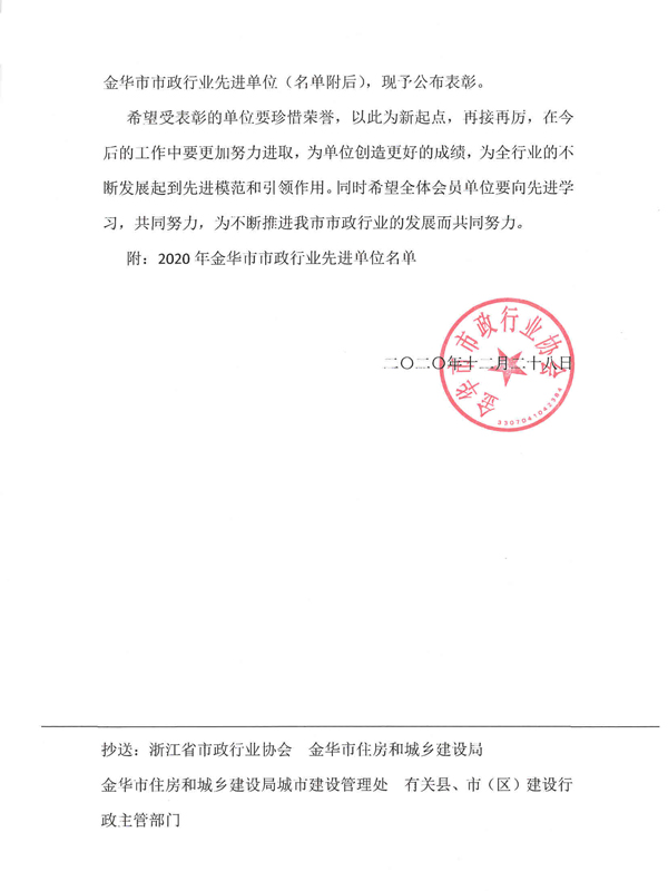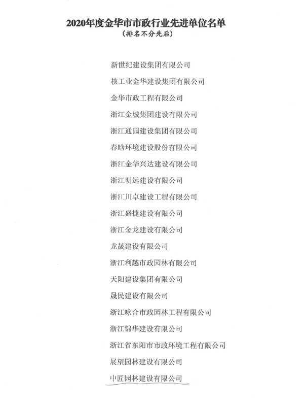 Advanced municipal industry units in Jinhua City in 2020