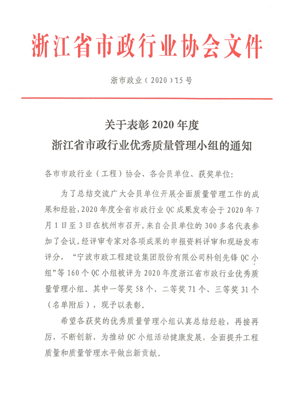 Next:2020 Yongkang North Third Ring Project QC Award