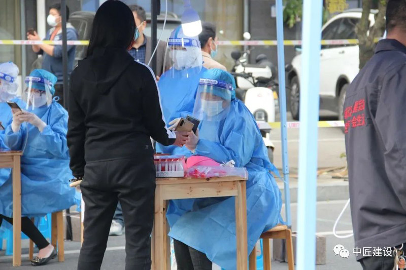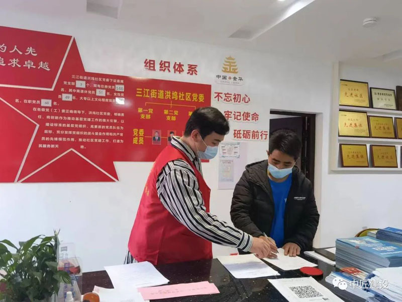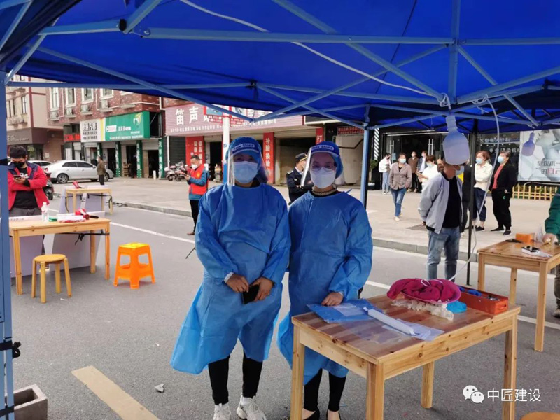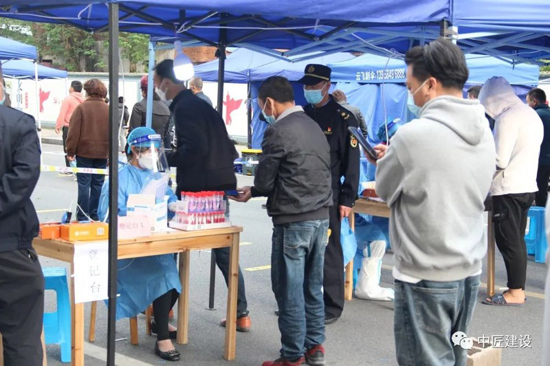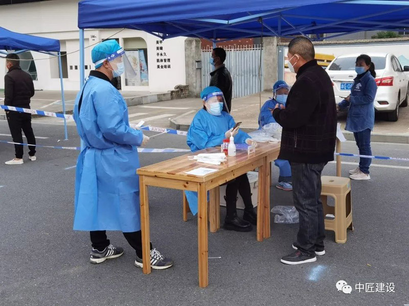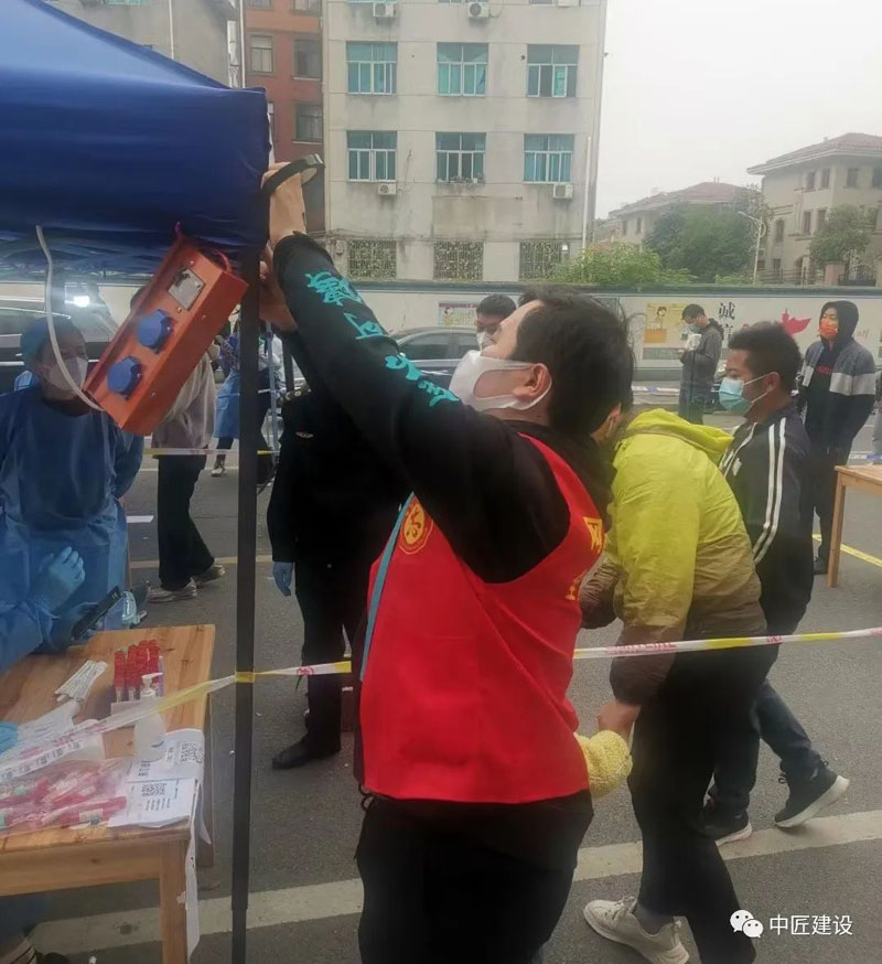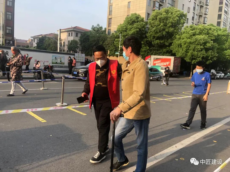 金華“4.15”疫情發生以來,中匠園林建設有限公司董事長占旭君帶領著家人和企業高層全身心的投入到疫情防控中,他負責洪塢社區疫情防控統籌協調的工作,組織搭設核酸采樣臺、引導居民核酸采樣、維持秩序、搬運物資等等,他的身影無處不在,不停地忙碌力求讓疫情防控更加有序。他說:“作為建筑業企業,我們一定要沖在最前、干在最前。