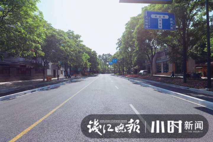 In the area close to Nanshan Road,landscape sketches,such as cultural copper wall and cultural copper brick,are added.Taking history as the lead and combined with the historical and cultural heritage of West Lake and Hefang Street,a landscape corridor showing urban history and block scenery is created.The greening improvement along the line is completed simultaneously,with both"appearance"and"function".
