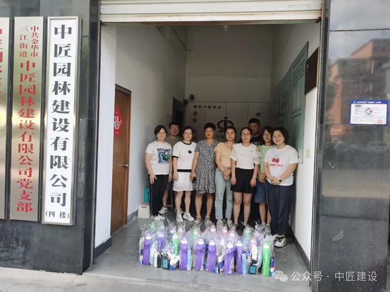 On the scorching afternoon of August 2nd, the figures of the Jinhua Economic and Technological Development Zone Federation of Trade Unions and Sanjiang Street Federation of Trade Unions walked into Zhongjiang Garden Construction Co., Ltd., bringing a unique "cooling off" activity and demonstrating care and responsibility through practical actions.