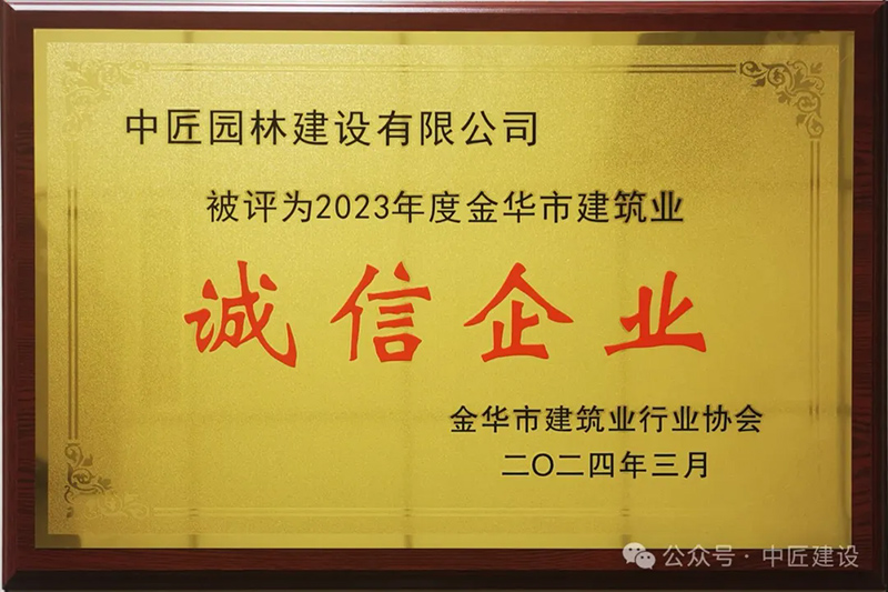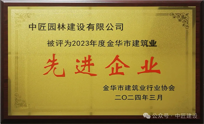 Recently, at the fifth council meeting of the first session of the Jinhua Construction Industry Association, Zhongjiang Garden Construction Co., Ltd. received exciting news: the company has won two honors in the 2023 Jinhua Construction Industry Advanced Enterprise and Integrity Enterprise!