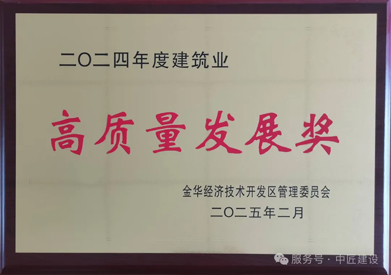 At the meeting, the development zone commended outstanding enterprises that have emerged in the past year. Among them, Zhongjiang Garden Construction Co., Ltd. was awarded the "2024 Jinhua Development Zone High Quality Development Award for Construction Industry" for its outstanding performance and high-quality development practices in the construction industry. This honor is not only a recognition of Zhongjiang Construction's high-quality business achievements in 2024, but also a recognition of its efforts in promoting industry progress and local economic development.